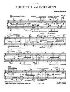 Robert Saxton: Ritornelli And Intermezzi for Piano