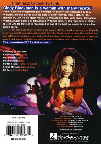 Instructional segments include Cindy demonstrating the similarities and differences between jazz and rock drumming. 60 minutes.