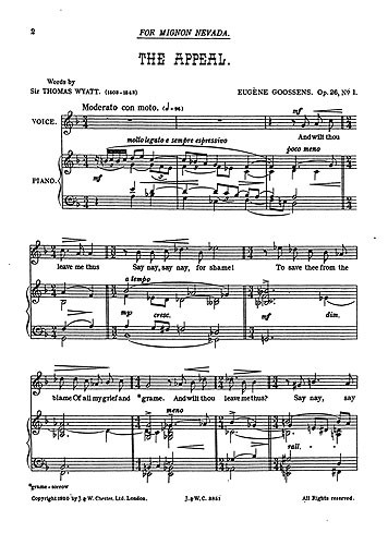 Goossens: The Appeal from 'Three Songs Op.26' for Medium Voice and Piano