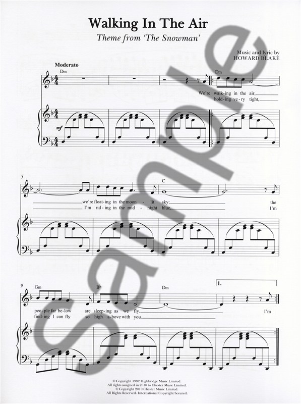 Here the classic 'Walking In The Air', made popular by Aled Jones is arranged for Voice and Piano. Music and lyrics by Howard Blake.