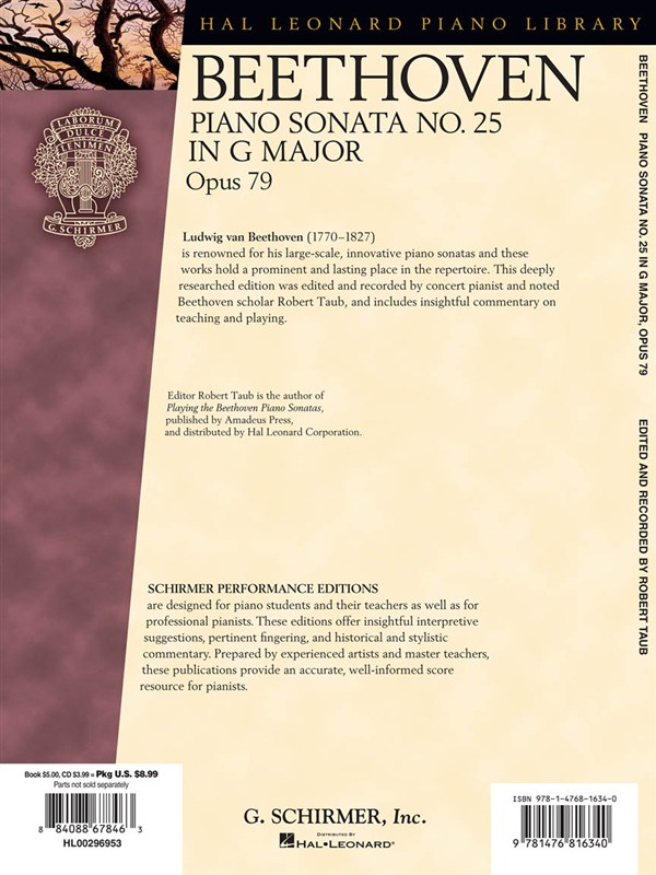 Ludwig Van Beethoven: Piano Sonata No.25 In G Op.79 (Schirmer Performance Editio