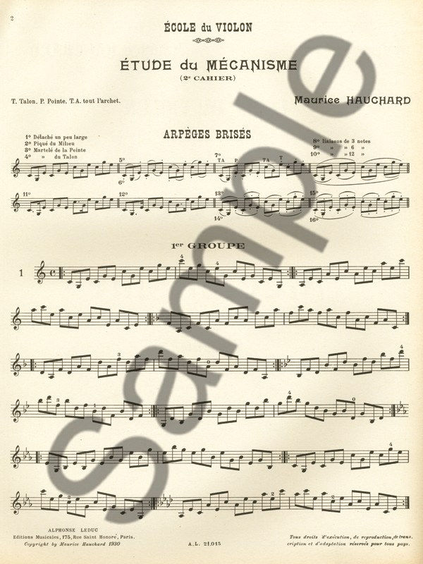 Exercices de Mécanisme Vol.2 was created by Maurice Hauchard (1870-1957), a French violinist, composer and music teacher. This is the second of a series of two constituting a renowned progressive method, for upper beginners.