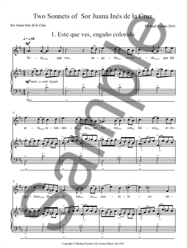 Michael Nyman's Two Sonnets Of Sor Juana Inés De La Cruz for solo Medium Voice and Piano.