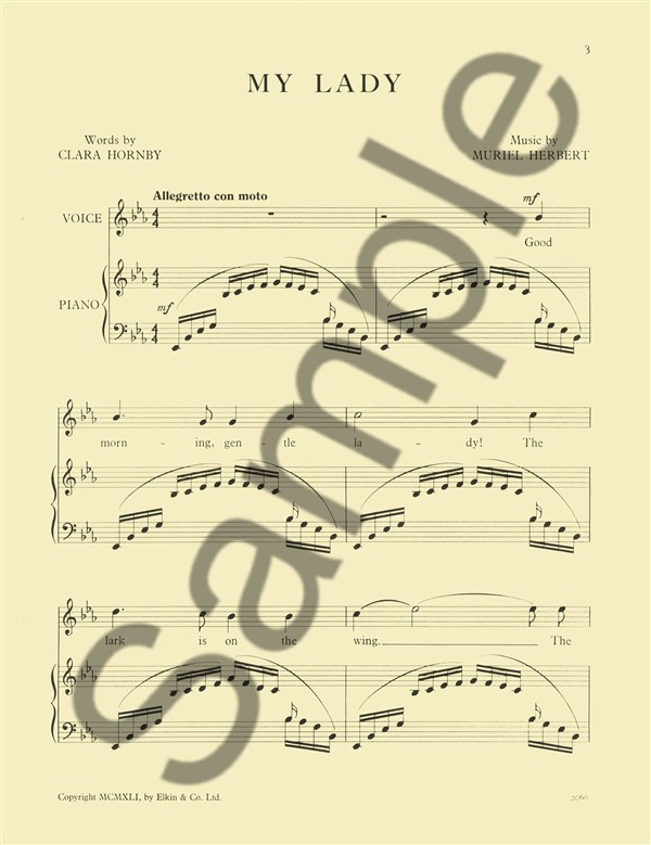 For Voice and Piano, with words by Clara Hornby. Innehåll My Lady ..