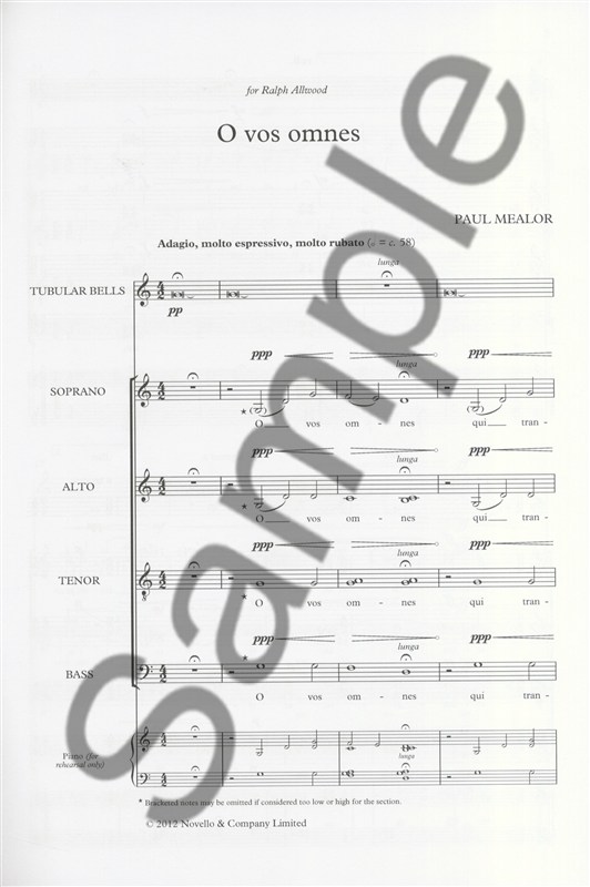 For SATB divisi chorus and tubular bells. Innehåll O Vos Omnes ..