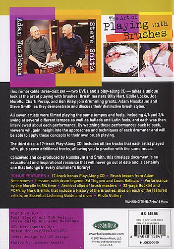 All seven artists were filmed playing the same tempos and feels, including 4/4 and 3/4 swing at several different tempos as well as ballads and Latin feels, and each was then interviewed about each performance. By watching these performances back to back, viewers will gain insight into the approaches and techniques of each drummer and will be able to apply these concepts to their own brush playing.