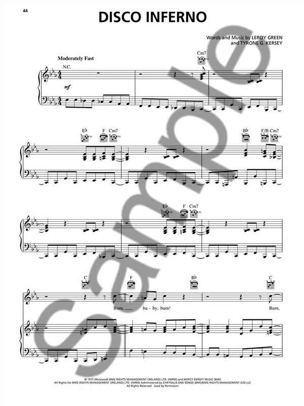 The Best Disco Songs Ever features 50 pieces of the most vibrant and well known Disco songs from the dance floor, arranged for Piano, Vocal and Guitar. This funky songbook includes sheet music for songs such as Car Wash, Funkytown and Y.M.C.A , to name a few. The Best Disco Songs Ever is the only Disco songbook you will need in your collection.